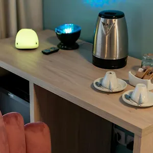 El bar grande de aperitivos de este hotel también espera a los huéspedes con sus bebidas suaves. El restaurante Pizzeria Burger Happy se encuentra cerca de este alojamiento.